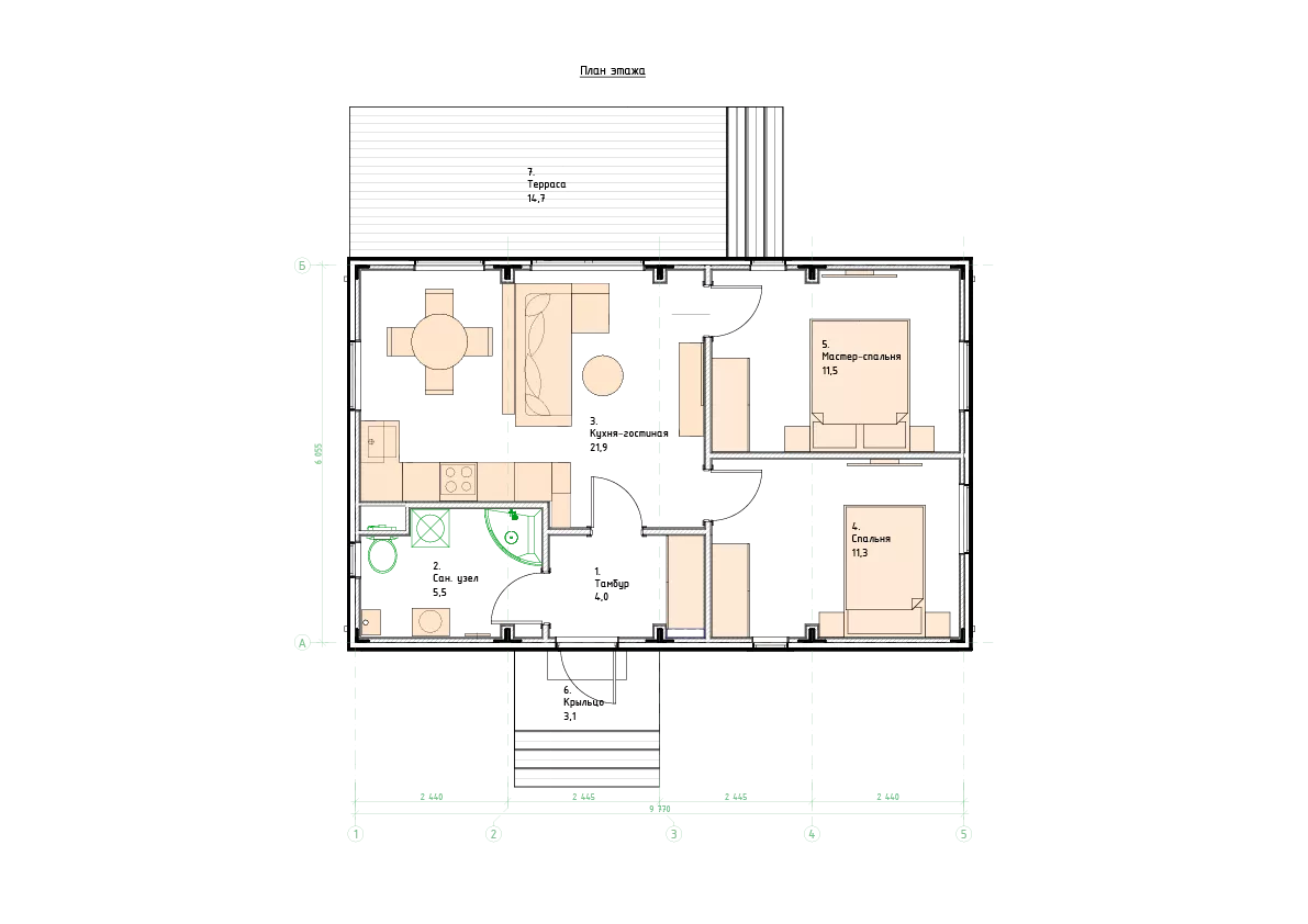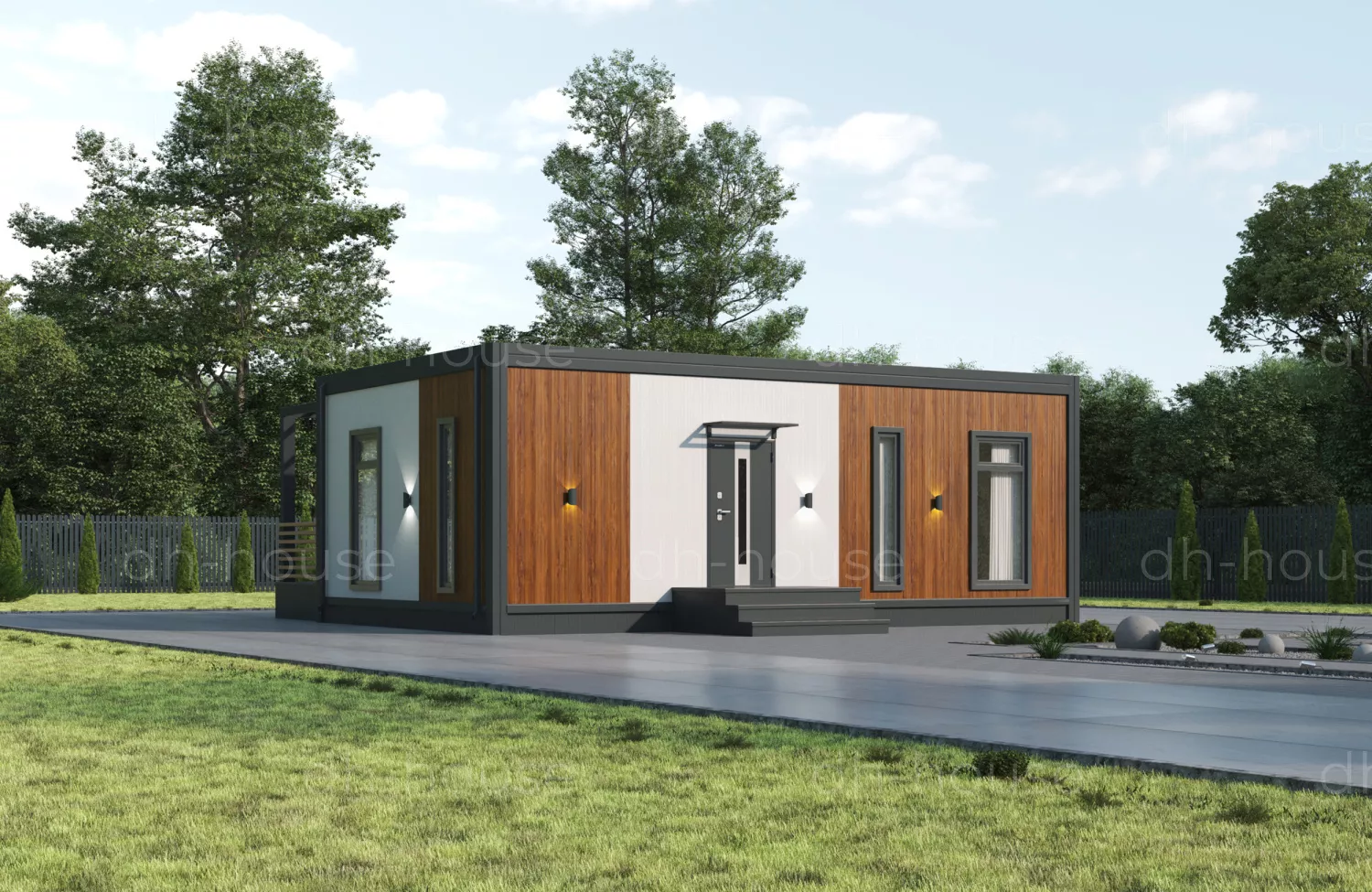 Модель "DoorHan Ультра 59" представляет одноэтажный дом современного дизайна общей площадью 59 квадратных метров. Этот компактный и экономичный вариант отлично подходит для маленькой семьи или пары, ищущей уютное и функциональное жилище.