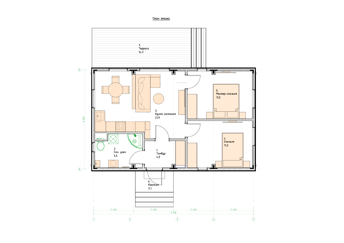 Модель "ULTRA 59" представляет одноэтажный дом современного дизайна общей площадью 59 квадратных метров. Этот компактный и экономичный вариант отлично подходит для маленькой семьи или пары, ищущей уютное и функциональное жилище.