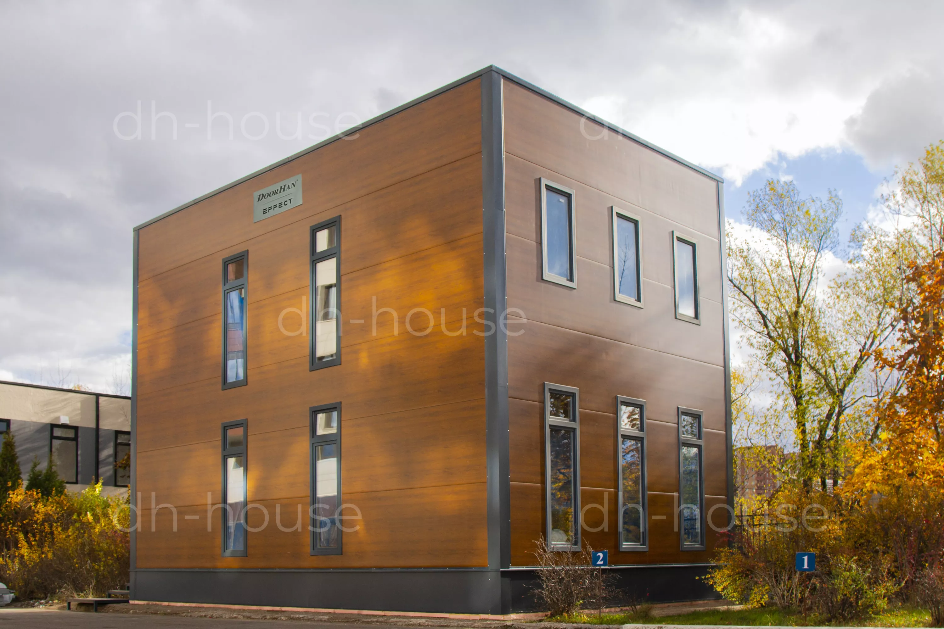 Быстровозводимый двухэтажный дом серии DoorHan Лайт 118 — теплый, комфортабельный и удобный в эксплуатации. Строительство блочно-модульного дома возможно всего за месяц. Он будет готов к эксплуатации сразу после возведения. Проект Doorhan дома отличается европейским лаконичным внутренним и наружным дизайном, а также применением современных строительных материалов, безопасных для людей и стойких к воспламенению. Большое количество окон позволяют создать приятную атмосферу, благодаря хорошему естественному освещению. Внутренняя планировка полностью зависит от пожеланий заказчика.