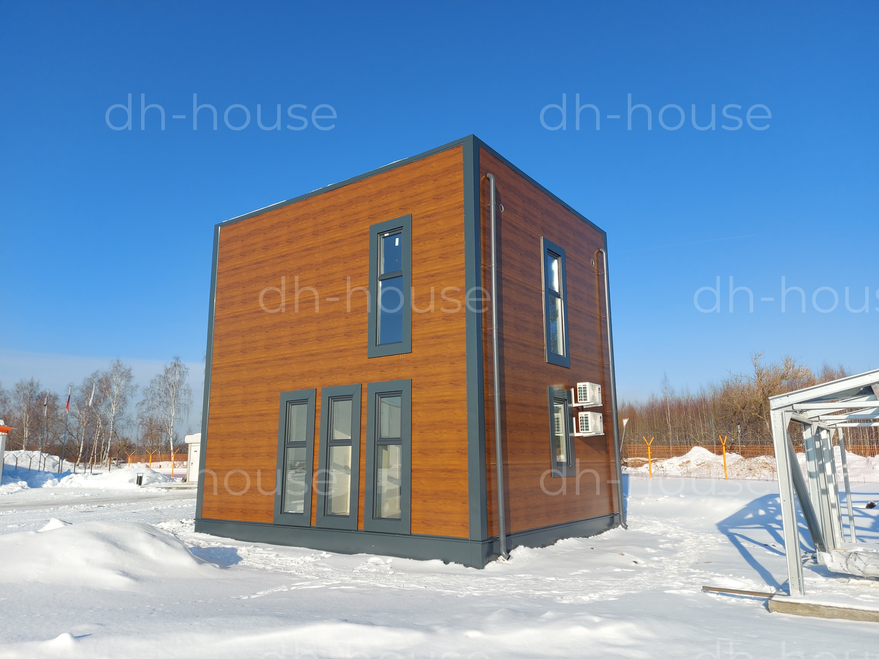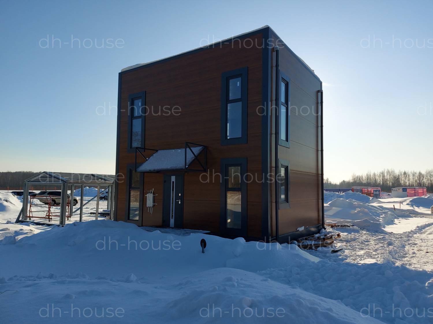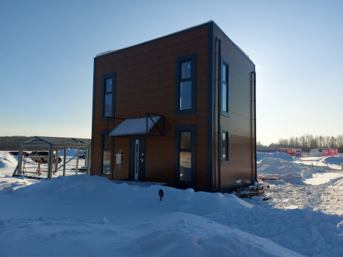 Модульный дом из сэндвич панелей EFFECT LIGHT 88 может использоваться не только для круглогодичного проживания, но и в качестве офиса. Строительство быстровозводимых домов предполагает применение энергоэффективных и износоустойчивых материалов, что позволяет существенно сократить эксплуатационные расходы. К тому же такие здания имеют высокий уровень пожарной и экологической безопасности. Не требующий дополнительных фасадных или отделочных работ модульный дом, предусматривает наличие трех спален, кухни, совмещенной с гостиной, санузла и гардеробной. При необходимости зонирование внутреннего пространства может быть изменено. Над крыльцом установлен специальный навес от дождя и снега.